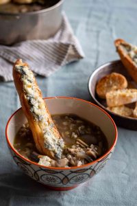 מרק חיטה, פטריות ובצל של שף ציון ברנץ. צילום: מתן שופן