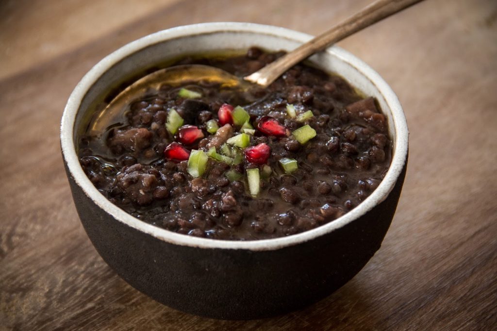 המטבח הערבי של ערי המרכז בארץ מנפק את אחד המאכלים המעניינים שאפשר להכין מרימונים: נזיד קר, פיקנטי ומרענן של עדשים, חצילים ורימונים כמובן