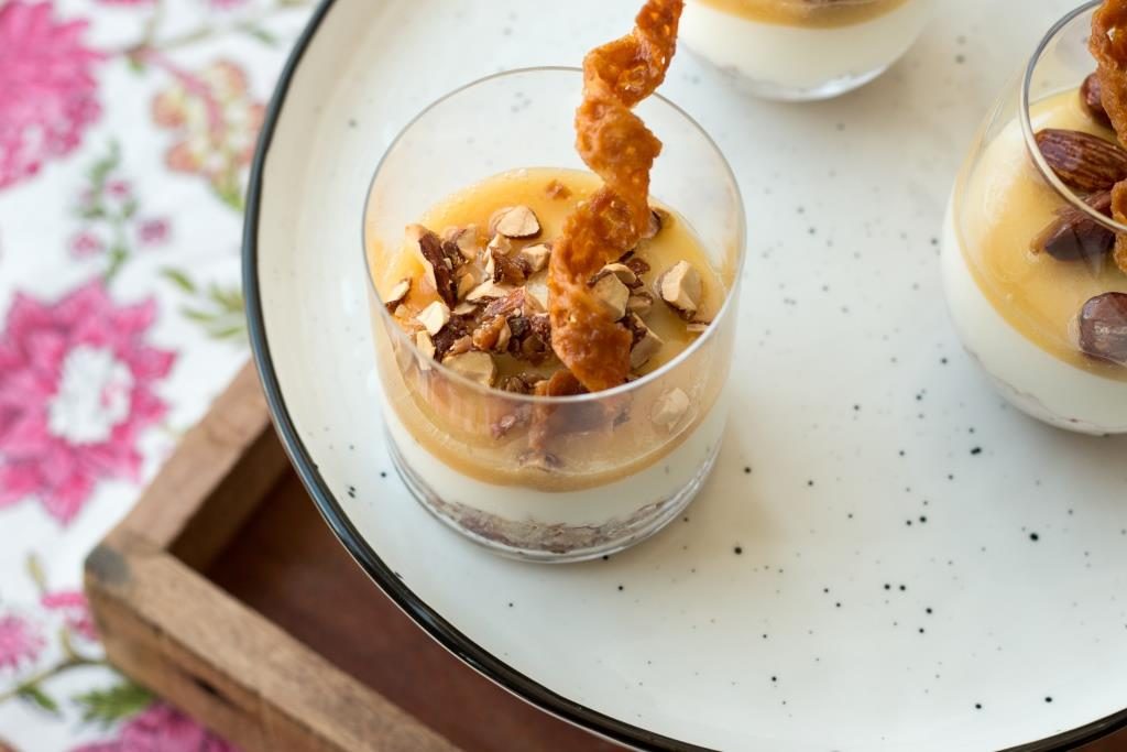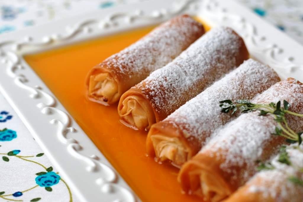 מאפי פילו קריספיים במילוי גבינות, לצד סירופ הדרים מתובל