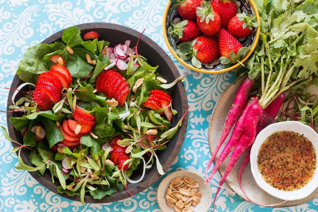 רוטב ליים ולמון גראס חמצמץ עוטף באהבה חוביזה טרייה, תותים ובוטנים