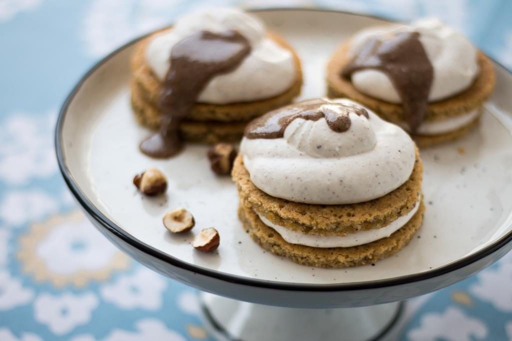 קינוח שכבות עשיר, מפנק ומרשים שמורכב מ"ספוג" אגוזים ללא גלוטן וקרם ריקוטה
