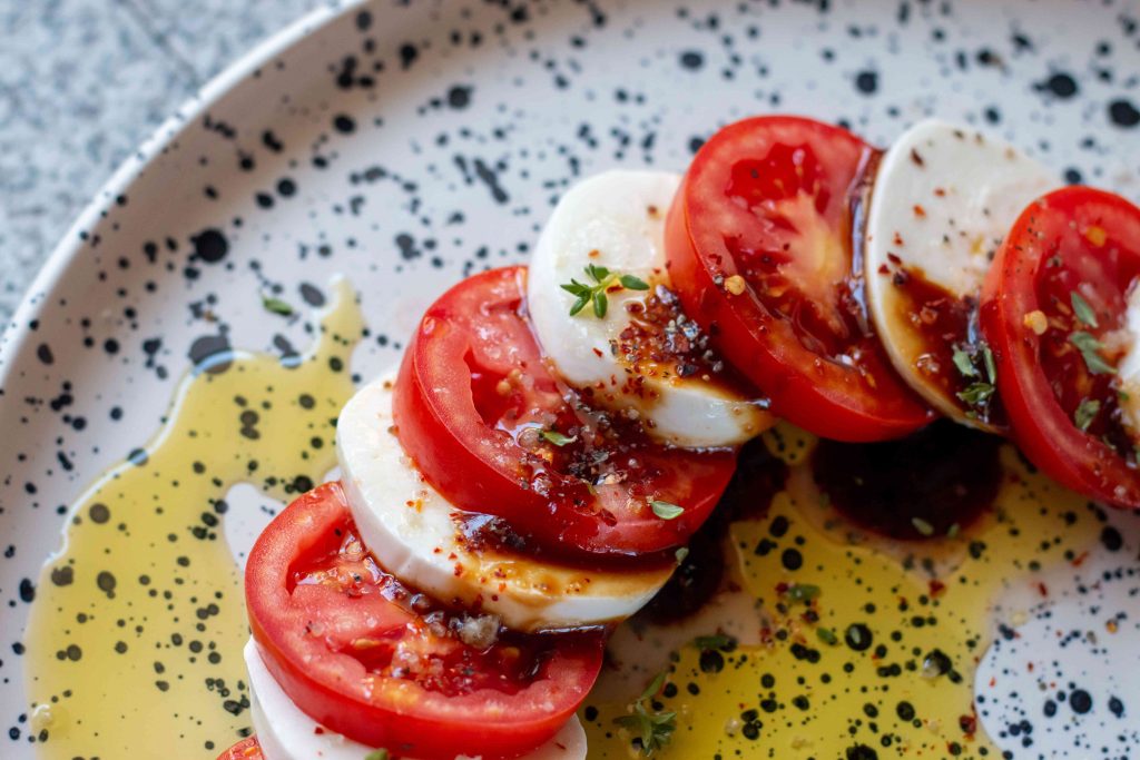 עידן ביטון* יצר גרסה מקומית ושונה לסלט הקפרזה האיטלקי הקלאסי: הסילאן מחליף את הבלסמי, הטימין את הבזיליקום ויש תוספת של
